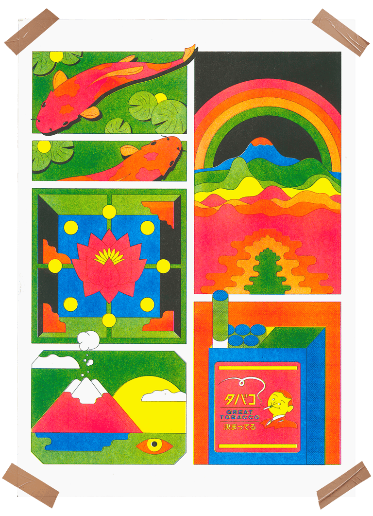 *Risograph is a brand of digital duplicators manufactured by the Riso Kagaku Corporation®, released in Japan in August 1986.